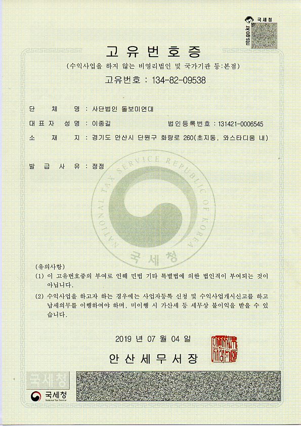 사단법인 돌보미연대 고유번호증 페이지 정보 작성자 운영자 댓글 0건 조회 1,846회 작성일 20-02-11 15:27 본문 사단법인 돌보미연대 고유번호증 SNS공유 목록 이전글사단법인 돌보미연대, 경기도 민간단체등록증 20.02.11 다음글사단법인 돌보미연대 법인 허가증 20.02.11 댓글목록 댓글목록 등록된 댓글이 없습니다.